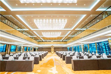 推薦理由:50桌全廳無柱宴會廳搭配豪華水晶吊燈,高星級酒店服務品質