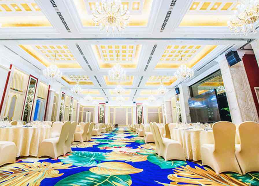 該酒店共計三個宴會廳,分別為龍鼎廳容納88桌,層高6.5米,無柱, 起訂餐標2699元,龍鳳廳容納66桌,層高5米,無柱,起訂餐標2399. 龍悅廳容納18桌,無柱,起訂餐標1999,該酒店為星級酒店集群,可承接西式婚禮、中式婚禮,舞臺設備配套完整。是結婚,企業年會的最佳選擇。