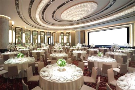對于不是很豪華的西式婚禮來說,選擇在宴會廳內辦婚宴肯定是最劃算的,不用支出額外的場地使用費,宴會廳有自然裝修,稍微做一些布置就可以極大的增加現場氛圍,如果有敬酒環節的話,也會更方便;同時宴會廳內一般采用圓桌式婚宴,菜品數量較為豐盛,價格也會比自助餐更加便宜。